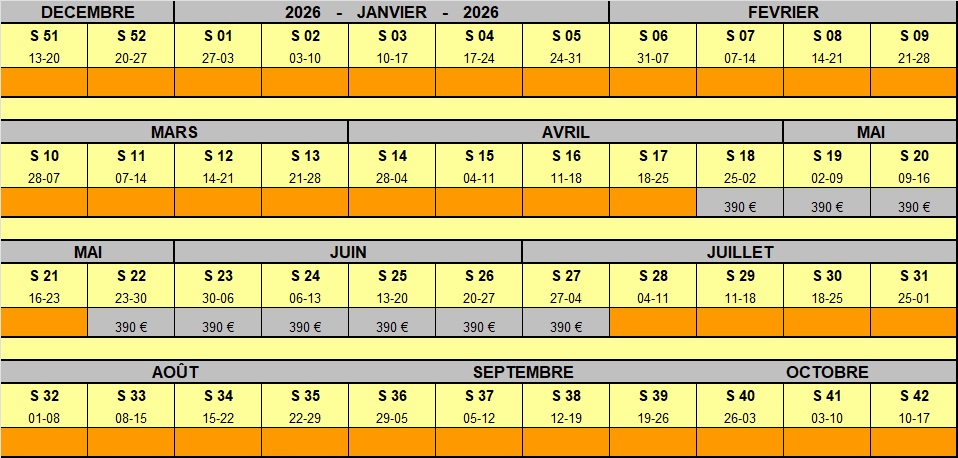 Disponibilités 2026