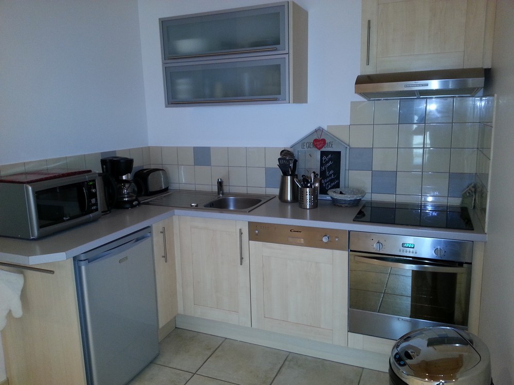 Cuisine aménagée sur le séjour , lave-vaisselle, plaques vitro, four, MO, hotte aspirante